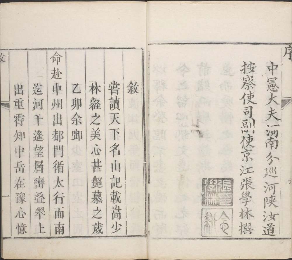 序(张学林撰)、叙(施奕簪撰)、叙(焦如蘅撰) 绘图、形胜、营建、古迹、祥异 纂修姓氏记:总裁(张学林、陈锡辂、张衷),原采辑(叶封、焦钦宠),续辑(施奕簪、焦如蘅) 焦钦宠,字锡山,号樗林。大约活跃于清康熙时期。 焦如蘅,字远倩,登封人。钦宠孙,乾隆元年 (1736) 举人。幼承家学,有文名。乾隆九年应邑令施奕簪之请,主纂《登封县志》。后又将其祖焦钦宠手稿《少林寺志》整理编辑成书问世。 施奕簪,字佩其,福建晋江人。是施琅留居北京的后代,后在顺天(北京)考中举人,雍正十三年(1735 年)任登封知县,勤于政事,多所修建,辑邑乘。秉公无私,人尤称之。” 施奕簪任登封县知县十多年,重修西关望楼、文庙大殿及其他附属建筑、明伦堂、书院,乾隆九年(1744 年)续修《登封县志》。乾隆十年(1745 年)还主持重修嵩山少林寺大殿。主持编辑出版第一部《少林寺志》。