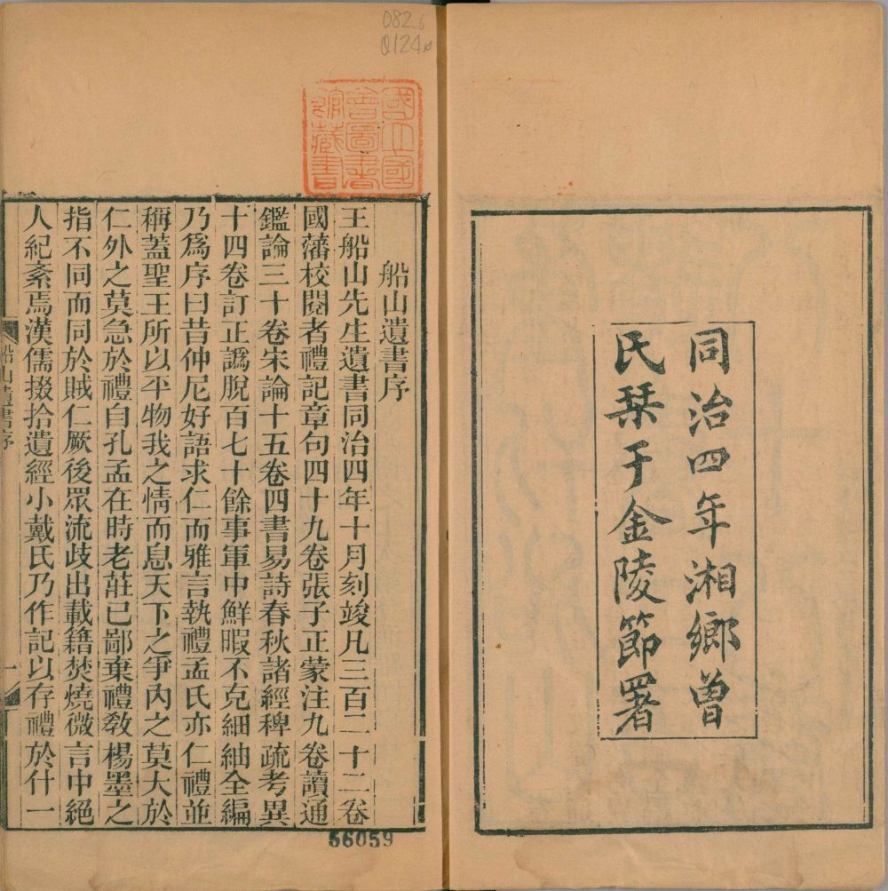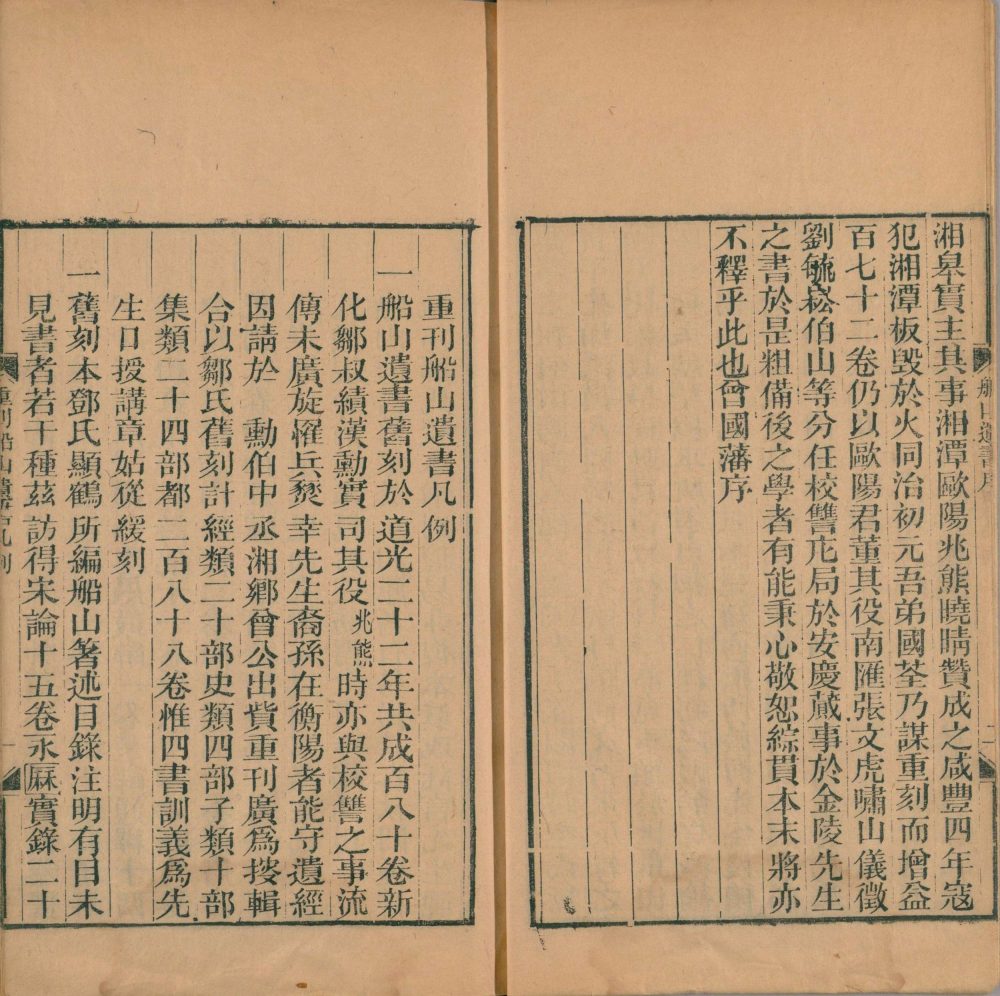 船山遗书序(曾国藩撰)、凡例、校刊姓氏、目录、著述目录、姜斋公行述、船山先生传、王船山先生遗像