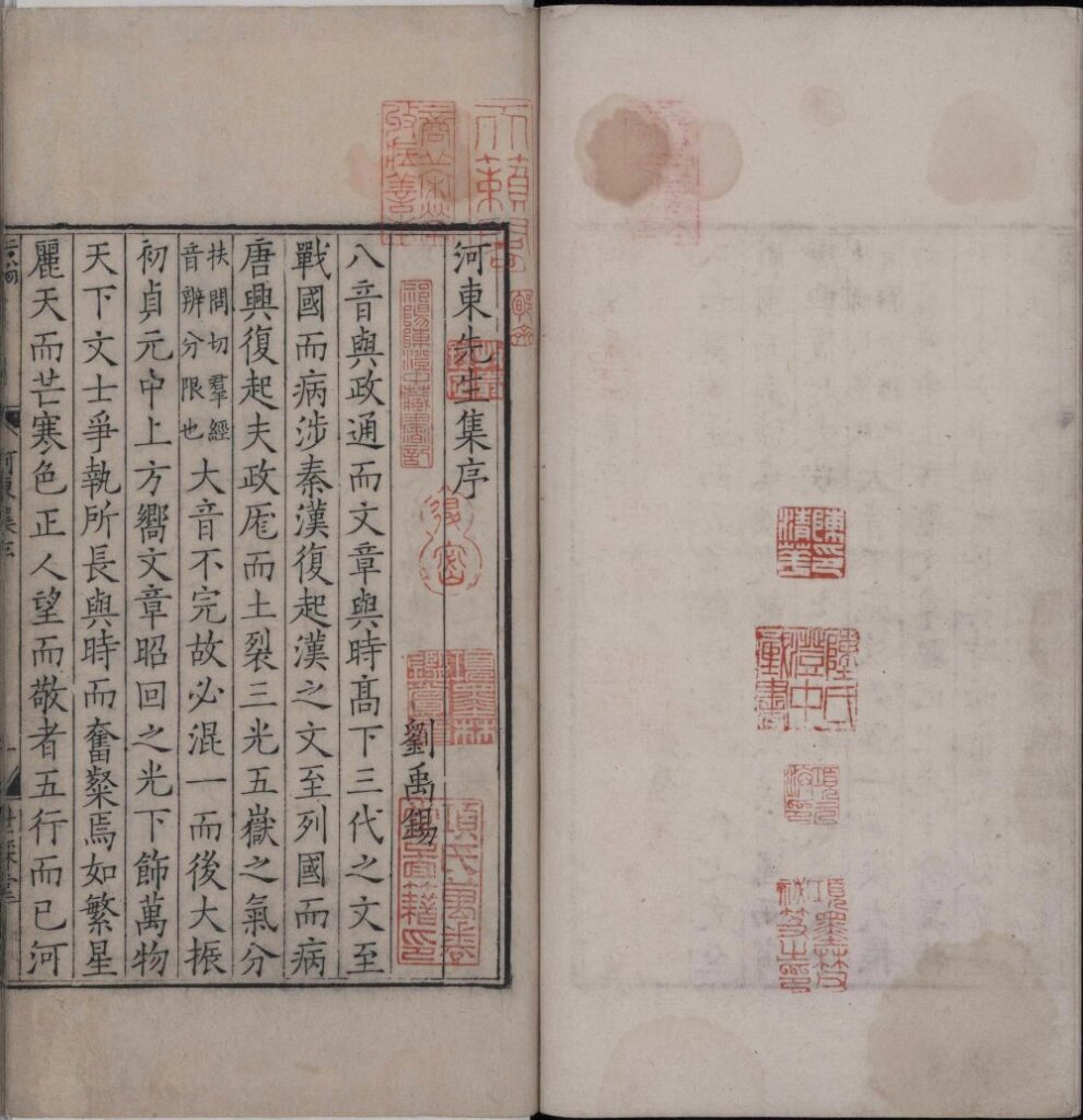 《河东先生集》为唐代柳宗元撰。柳宗元主张 “文以明道”,内收录其诗文六百余篇。全书包含正集四十五卷,按文体分类编次,分雅诗歌曲,赋各一卷、文三十九卷、诗二卷、《非国语》二卷。另有外集二卷。此为中国国家图书馆藏宋咸淳时期廖莹中世彩堂刊本。